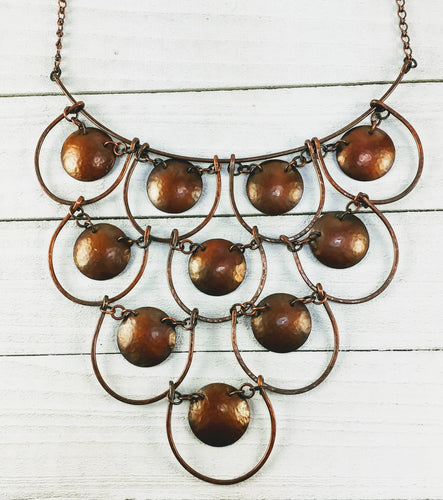 Tribal Copper and Leather Necklace with Czech Glass Daggers